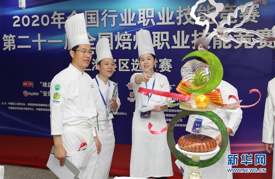 8月5日,评委在作品展示区为选手的作品打分。 当日,第二十一届全国焙烤职业技能竞赛上海赛区选拔赛,在上海市现代食品职业技能培训中心举行,来自上海、江苏、浙江等地的近60名焙烤行业技师,在艺术面包、传统糕点、糖艺和艺术巧克力等项目中进行比拼,在充满焙烤香气的赛场上展现技艺。 新华社记者方喆摄