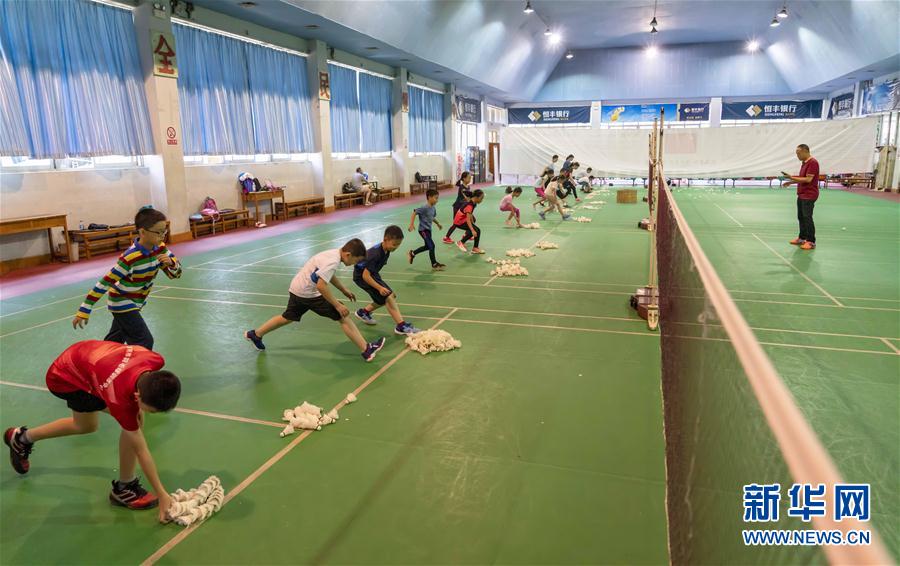 8月5日,在昆明市体育馆内,羽毛球培训班学员们在训练。 暑假期间,昆明市青少年体育俱乐部在做好防疫、确保安全和健康的前提下开办了篮球、羽毛球、空手道、跆拳道等项目培训班,孩子们通过参加体育培训班的方式丰富暑期生活,培养对体育的兴趣,增强体质。 新华社发(陈欣波摄)