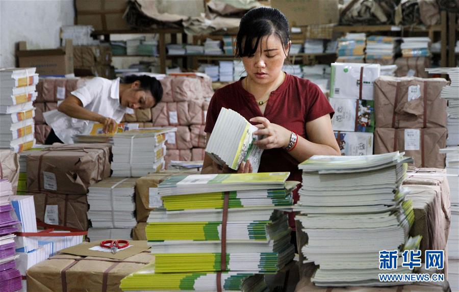 8月18日,江西省靖安县新华书店工作人员在仓库里清点整理新学期教材。 开学将近,各地做好新教材的调运、整理和发送工作,确保开学时新书及时发放到学生手中。 新华社发(徐仲庭 摄)