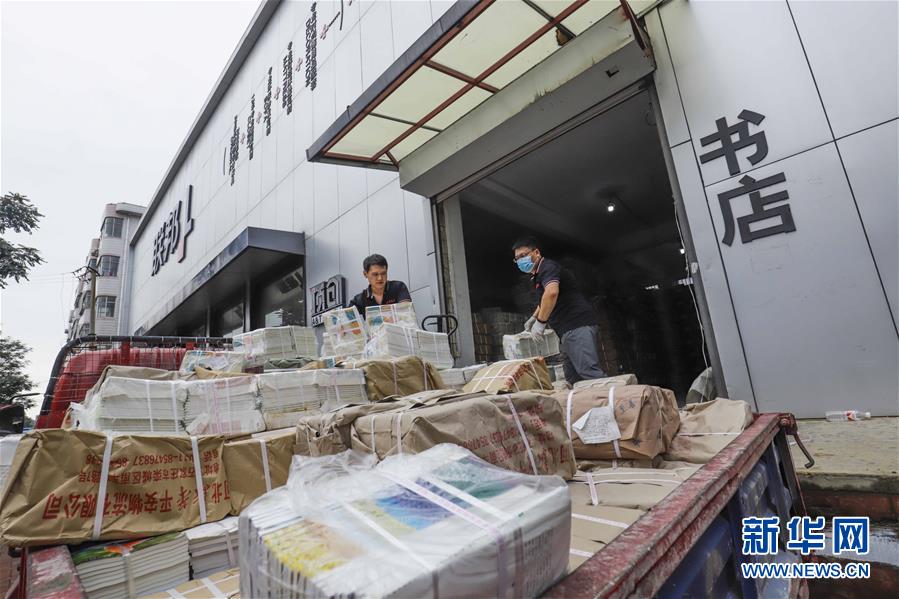 8月18日,河北唐山新华书店遵化分公司的工作人员将新学期教材装车,准备送到学校。 开学将近,各地做好新教材的调运、整理和发送工作,确保开学时新书及时发放到学生手中。 新华社发(刘满仓 摄)
