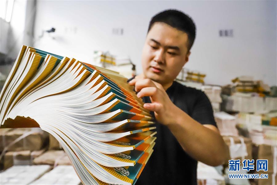 8月18日,河北唐山新华书店遵化分公司的工作人员在清点新学期教材。 开学将近,各地做好新教材的调运、整理和发送工作,确保开学时新书及时发放到学生手中。 新华社发(刘满仓 摄)