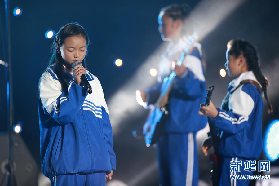 “未知少年”乐队主唱晏兴雨(左一)在“海嘎少年的夏天”音乐会上演出(8月19日摄)。 新华社记者 刘续 摄
