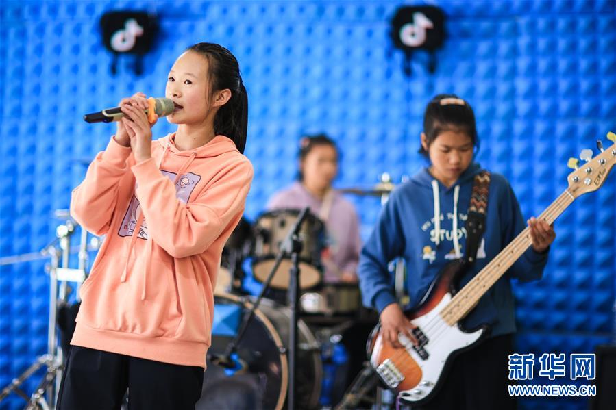 “遇”乐队主唱晏兴丽(左一)和贝斯手罗春梅(右一)在演出前排练(8月18日摄)。 新华社记者 刘续 摄
