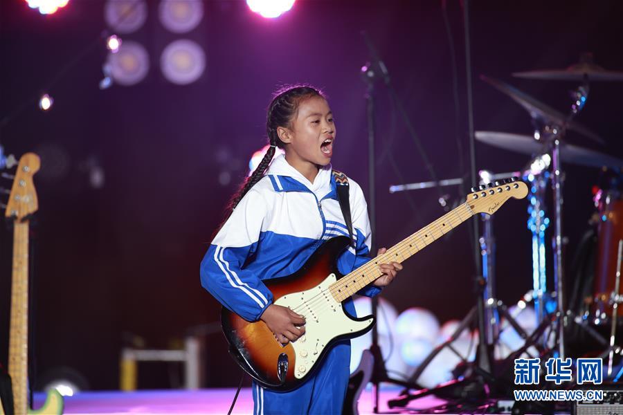 “未知少年”乐队吉他手熊婷在“海嘎少年的夏天”音乐会上表演(8月19日摄)。 新华社记者 刘续 摄