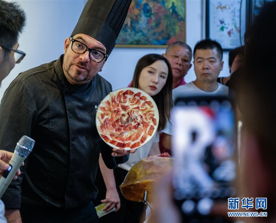 8月25日,专业导师在展示一盘合格的火腿切片。 新华社记者 徐昱 摄