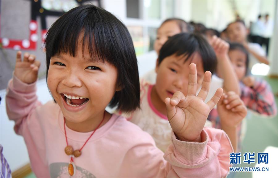 8月25日,即将入园的孩子们在新落成的灵口镇中心幼儿园做游戏。 当日,新落成的陕西省洛南县灵口镇中心小学教学楼和灵口镇中心幼儿园邀请即将开学的孩子们参观、体验新的教学环境。灵口镇中心小学原有16个教学班,其中超过55人的大班13个。新落成的教学楼增加了15个教学班,新增600个学位,不仅可改善昔日教室拥挤现象,也可解决搬迁户子女入学难问题。 新华社记者陶明摄