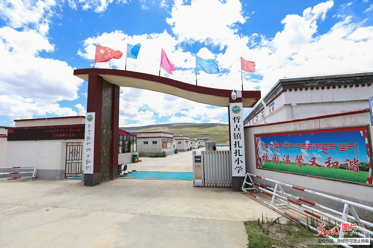 扎扎小学始建于1993年,平均海拔4500米,2014年开始改扩建,现占地面积37000多平米,建筑面积5900多平米,现有普通教室6间,各种功能室12间,目前在校学生157人全部享受“三包”政策,教师22人。(赵金悦摄/光明图片)
