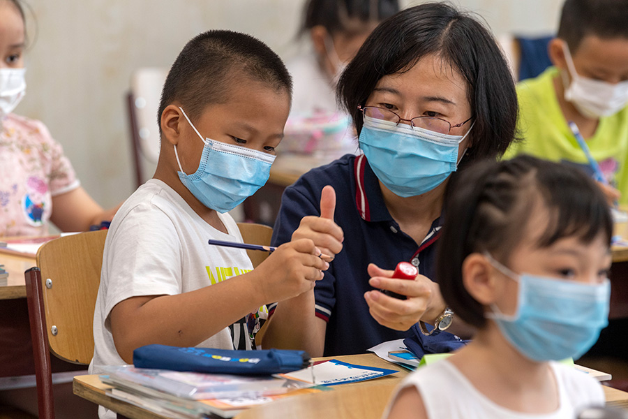 受新冠肺炎疫情影响,今年北京市中小学、幼儿园实行分批、错峰开学。8月29日,北京市中小学开学季启动,小学一年级,初一年级、初三年级,高中三个年级率先开学,约59万学生校园报到,其中约有20.5万是小学一年级新生。据悉,多数学校安排了新生入学教育、开学典礼、开学第一课等主题活动,帮助学生度过从居家生活到校园学习的适应阶段。(人民网记者 翁奇羽 摄影报道)