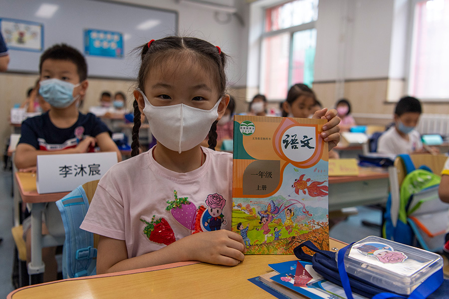 受新冠肺炎疫情影响,今年北京市中小学、幼儿园实行分批、错峰开学。8月29日,北京市中小学开学季启动,小学一年级,初一年级、初三年级,高中三个年级率先开学,约59万学生校园报到,其中约有20.5万是小学一年级新生。据悉,多数学校安排了新生入学教育、开学典礼、开学第一课等主题活动,帮助学生度过从居家生活到校园学习的适应阶段。(人民网记者 翁奇羽 摄影报道)