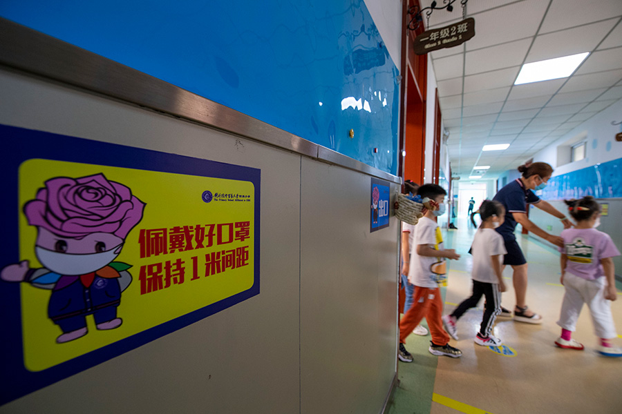 受新冠肺炎疫情影响,今年北京市中小学、幼儿园实行分批、错峰开学。8月29日,北京市中小学开学季启动,小学一年级,初一年级、初三年级,高中三个年级率先开学,约59万学生校园报到,其中约有20.5万是小学一年级新生。据悉,多数学校安排了新生入学教育、开学典礼、开学第一课等主题活动,帮助学生度过从居家生活到校园学习的适应阶段。(人民网记者 翁奇羽 摄影报道)
