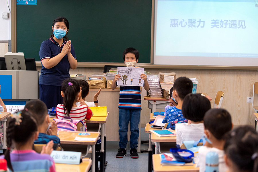 受新冠肺炎疫情影响,今年北京市中小学、幼儿园实行分批、错峰开学。8月29日,北京市中小学开学季启动,小学一年级,初一年级、初三年级,高中三个年级率先开学,约59万学生校园报到,其中约有20.5万是小学一年级新生。据悉,多数学校安排了新生入学教育、开学典礼、开学第一课等主题活动,帮助学生度过从居家生活到校园学习的适应阶段。(人民网记者 翁奇羽 摄影报道)