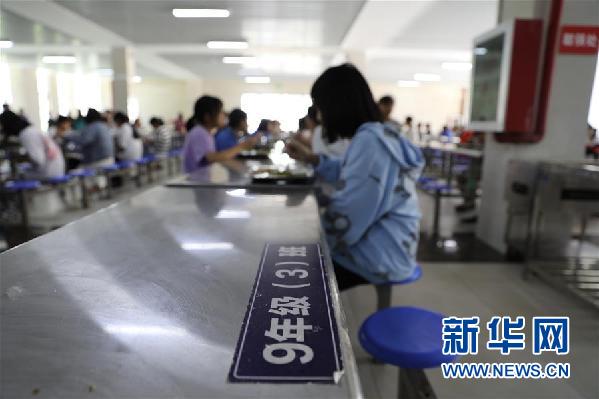 在晴隆县第六中学,学生们在食堂按照分班就坐的方式用餐(8月25日摄)。新华社记者 杨欣 摄