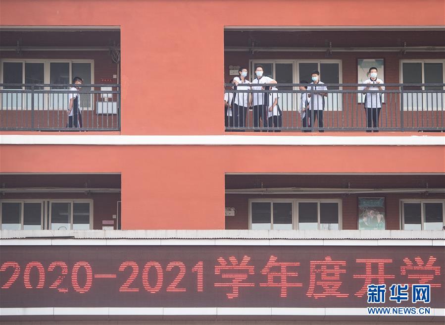 新华社照片,武汉,2020年9月1日 武汉迎来百万学子返校开学 9月1日,武汉中学的学生在教室前。 当日,武汉市2842所中小学、幼儿园迎来开学,涉及学生139.9万人,百万学子重返校园。 新华社记者 肖艺九 摄
