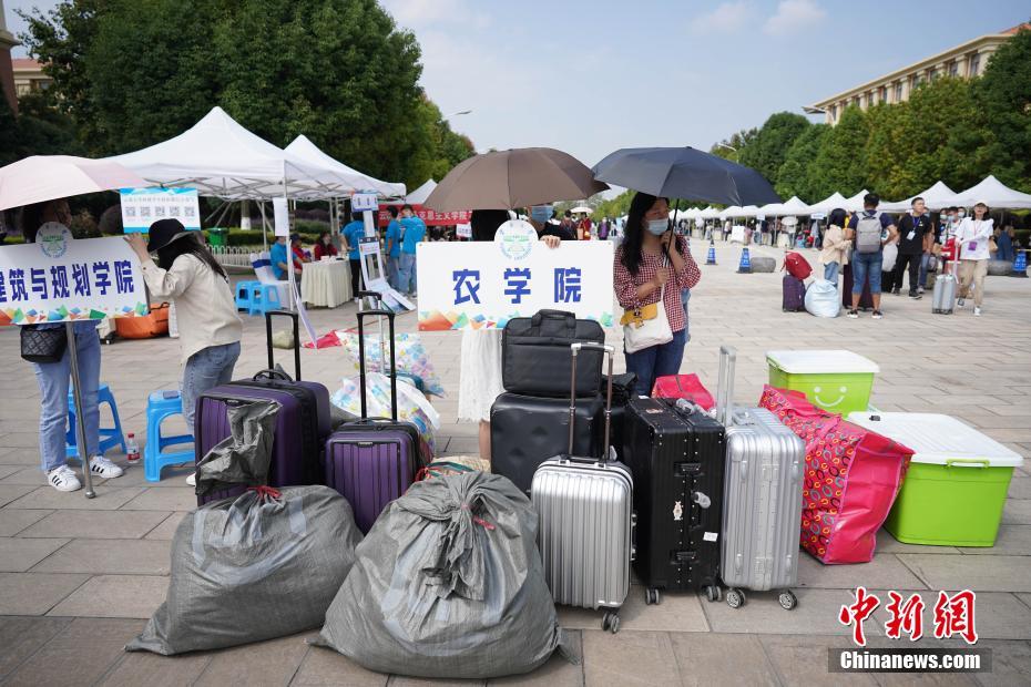 9月3日,各学院报道点前放着不少新生行李。当日,云南大学迎来2020级研究生报到。根据疫情防控工作要求,云南大学2020级学生开学采取分批次、错峰报到方式进行。中新社记者 刘冉阳 摄