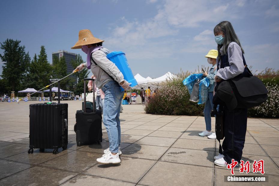 9月3日,学校工作人员对新生行李消毒。当日,云南大学迎来2020级研究生报到。根据疫情防控工作要求,云南大学2020级学生开学采取分批次、错峰报到方式进行。中新社记者 刘冉阳 摄