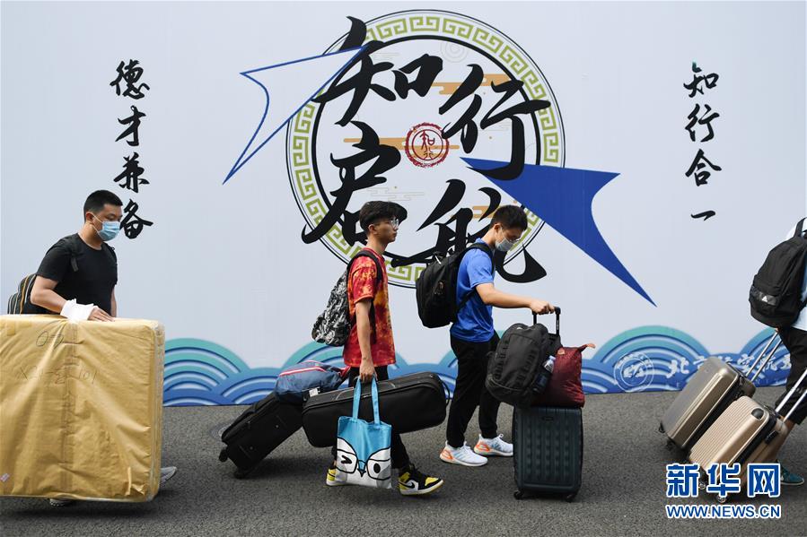 9月14日, 2020级本科新生拉着行李走在北京航空航天大学校园内。 当日,北京航空航天大学迎来2020级本科新生。北京航空航天大学2020年共录取本科新生3843人。 新华社记者 鞠焕宗 摄