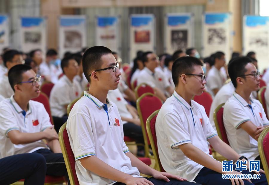 9月17日,福州三中学生在聆听龙乐豪院士讲解航天知识。 当日,航天专家、中国工程院院士龙乐豪和部分专家走进福州三中,开展航天科普大讲堂活动,为学生们宣讲航天精神,普及航天知识。 新华社记者 林善传 摄