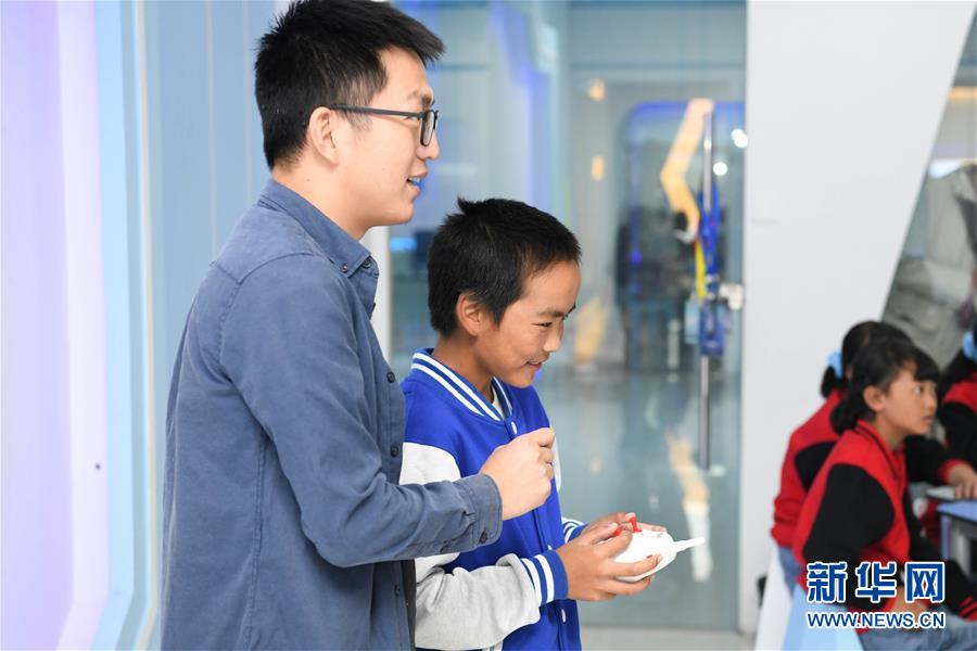 10月6日,在合肥启迪科技城,来自西藏山南市的学生松达次仁(前右)在体验无人机操作。 当日,30名西藏学生走进合肥启迪科技城,感受科技魅力。据了解,9月30日,这30名来自西藏山南市的学生来到安徽,在为期一周的时间里先后前往安徽博物院、包公园、泾县桃花潭、合肥启迪科技城等地参观体验。 新华社记者 张端 摄