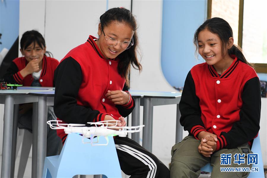 10月6日,在合肥启迪科技城,来自西藏山南市的学生了解无人机相关知识。 当日,30名西藏学生走进合肥启迪科技城,感受科技魅力。据了解,9月30日,这30名来自西藏山南市的学生来到安徽,在为期一周的时间里先后前往安徽博物院、包公园、泾县桃花潭、合肥启迪科技城等地参观体验。 新华社记者 张端 摄