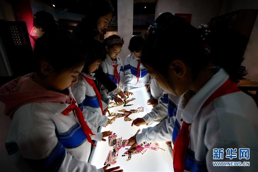 10月19日,小学生们在中国滦州皮影博物馆内了解皮影人制作技艺。 今年以来,河北省滦州市横渠实验小学成立皮影兴趣社团,在当地的中国滦州皮影博物馆开设校外课堂,组织学生定期参观、学习,增强学生对传统文化的了解。 新华社记者 牟宇 摄