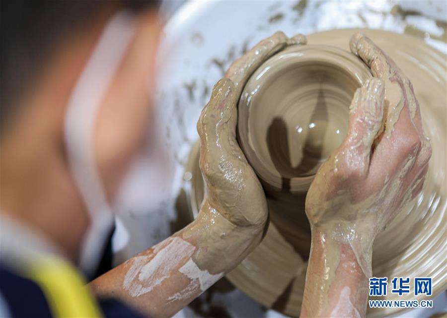 10月25日,在邯郸市峰峰矿区,参赛选手在进行拉胚比赛。 当日,河北省邯郸市峰峰矿区举办第三届峰峰矿区青少年磁州窑陶瓷技艺大赛。本次比赛设置有磁州窑造型技艺和彩绘技艺两大项目,吸引中小学生共300余人参加。创烧于宋代的磁州窑,是我国古代北方最大的民窑。近年来,河北省邯郸市峰峰矿区的磁州窑艺人,在传统技艺基础上,融入现代理念、科技元素,不断创新陶瓷工艺和产品,让千年古窑焕发出时尚气息。 新华社记者 王晓 摄