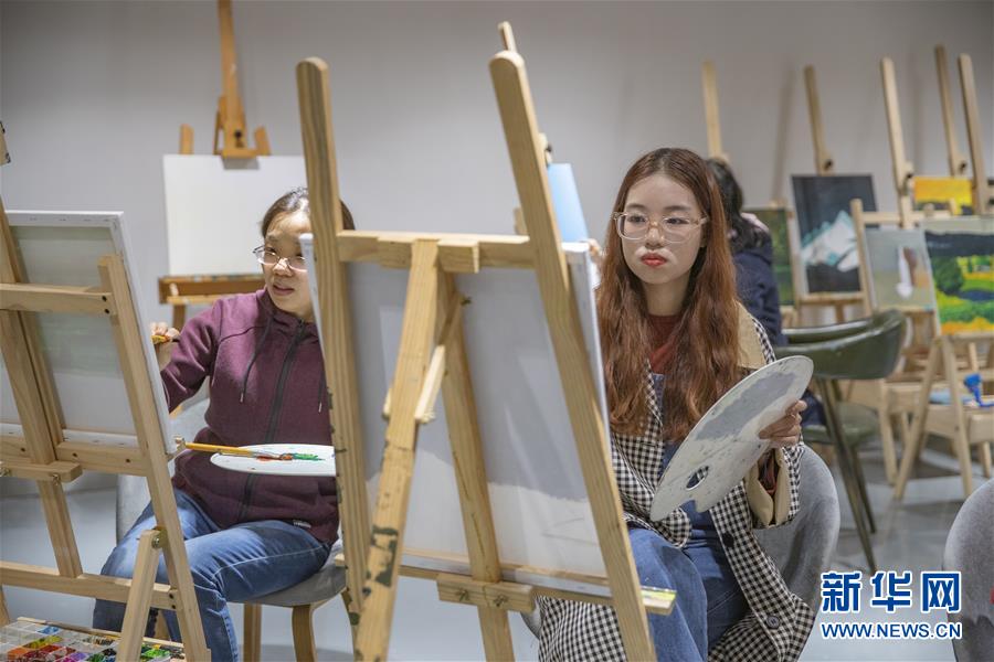 10月27日,在重庆市九龙坡区总工会职工活动中心的文化艺术培训中心,油画班的职工学员们练习油画创作。 近年来,重庆市九龙坡区总工会为辖区企事业单位职工精心打造了总面积超过2400平方米的职工活动中心,开设职工幸福课堂,定期提供艺术和手工培训课程。同时分别设置健身活动中心和文化艺术中心,“动静相隔亦相和”。“一堂课,两中心”让职工活动有声有色,受到职工们的欢迎。 新华社记者 黄伟 摄