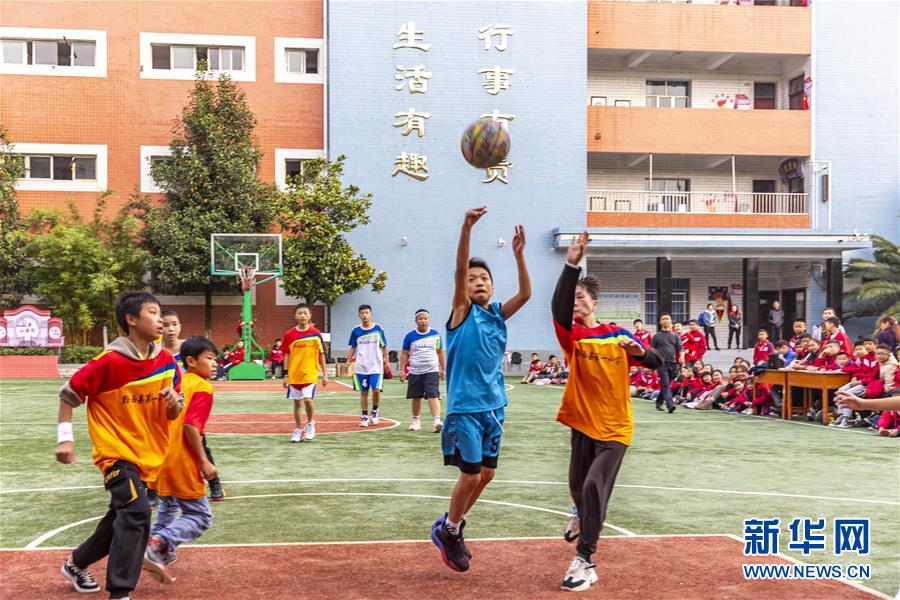 10月29日,贵州省毕节市黔西县第一小学学生进行篮球比赛。 近年来,贵州省毕节市黔西县第一小学在做好教学工作的同时,常态化开展一系列课外活动,丰富和繁荣校园文化生活,让孩子们快乐学习、健康成长。 新华社发(范晖 摄)
