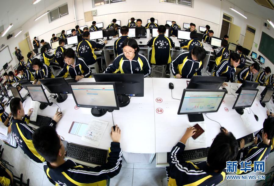 11月12日,河北省衡水市第二中学高三学生在进行2021年高考网上报名。2021年河北省普通高校招生考试网上报名工作陆续展开,11月11日至15日为网上申报阶段,11月16日至11月25日为报名资格审核和现场确认阶段。新华社记者 朱旭东 摄