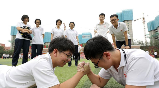 2020年高考临近,河北省衡水市第二中学组织开展多种形式的集体“减压”活动,帮助高三学生在紧张备考之余释放身心压力,以轻松、乐观、自信的心态迎接高考。
