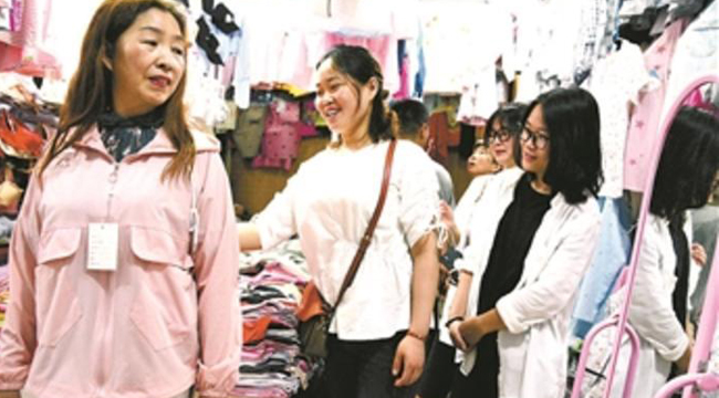 10日,江苏省镇江市和平路街道金江社区组织10多名有自主创业意向的居民来到一家小商品市场,向商铺创业人员学习“创业经”,并现场进行商品营销模拟体验。