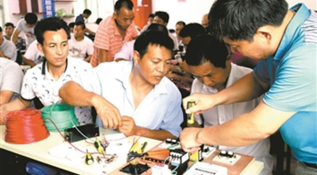 6月12日,湖南省隆回县锦程职业培训学校电工班,贫困户在免费参加电工培训。