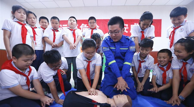 暑假即将到来,山东青岛市即墨区华山路小学开展“珍爱生命,预防溺水”为主题的安全教育活动,邀请蓝天救援队志愿者走进课堂。
