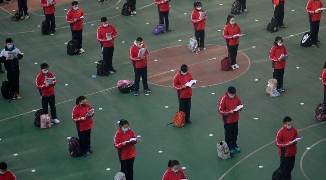 4月30日,湖北省武昌实验中学组织该校584名高三学生进行核酸和血清抗体检测,迎接即将到来的复学复课。