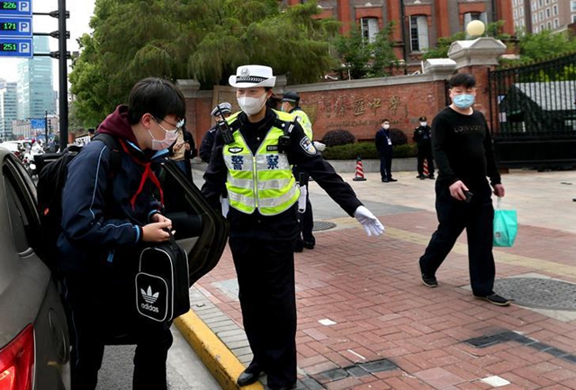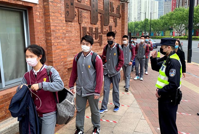 当日,上海高三年级、初三年级学生返校开学。4月27日,华东师范大学第一附属中学的高三学生通过公共热感应通道入校。 当日,上海高三年级、初三年级学生返校开学。