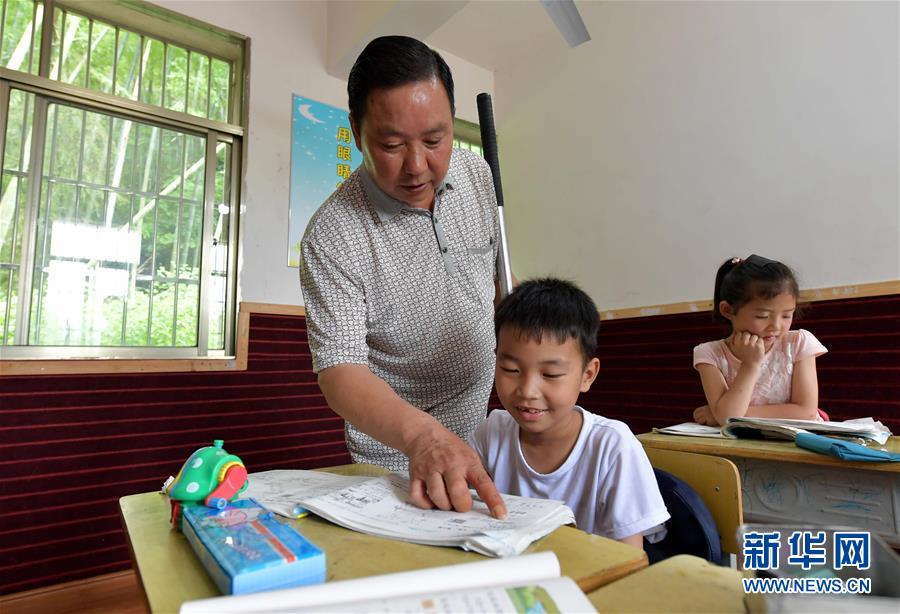 高自仁正在辅导孩子们的功课(2018年5月15日摄)。新华社记者 彭昭之 摄