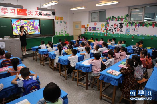 8月31日,陇南市武都区钟楼小学一年级学生在上开学第一课。新华社记者 杜哲宇 摄