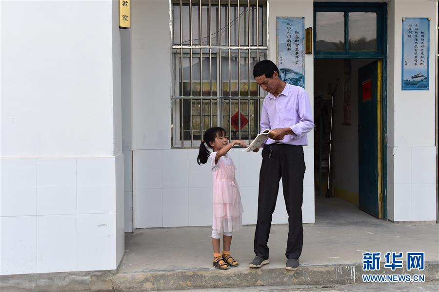 9月7日,在霍山县磨子潭镇金岩教学点,课间休息时一年级的彭杭艳向项发权问问题。新华社记者 黄博涵 摄