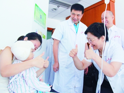 马芙蓉(右二)在查看小患者术后情况。谢焰锋摄/光明图片