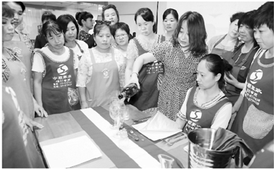 原来,为顺应市场需要,中顺家政在传统家政服务课程的基础上,又新开设了西餐礼仪、红酒品鉴、花道课程,为家政员提高服务水平保驾护航。孙雯 臧慧 摄