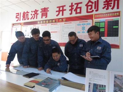 海港劳模创新工作室于2017年7月8日由集团公司工会授牌成立。工作室目前共有成员21人,其中劳模1人,主要职责是为济青项目参建人员提供学习、研究、创新、“绣花”的平台,以解决瓶颈问题为核心,提高生产效率、降低生产成本、达到安全环保目标。工作室以“匠心筑梦 花耀济青”为理念,依托“理论室”“创新基地”和“通信绣花工作室”三大块开展工作。