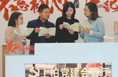 12月10日,浙江省湖州市德清县舞阳街道党员在上柏村“红色驿站”开展专题党课活动,组织企业和农村党员通过专题讲座、阅读的形式,贯彻《中国共产党支部工作条例(试行)》,加强党支部标准化、规范化建设。