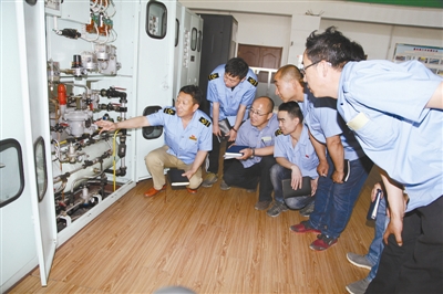赵辉创新工作室团队在模拟工作台讲解电力机车空气管路原理