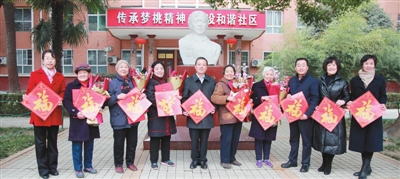 一束束鲜花,一副副春联。慰问组一行向老姐妹送鲜花、送福字、送春联,祝她们新年快乐,健康长寿!