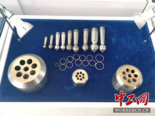 图为国家科技进步奖二等奖 高压轴向柱塞泵/马达项目核心部件柱塞环,缸体,柱塞 中工网记者白胜利摄