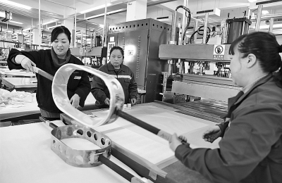 春节过后,在劳务协作中,江苏省海安市对今年新招的340名陕西省略阳县务工人员开始进行岗前培训。图为2月24日,海安经济技术开发区一体育用品车间内,技术人员正在给工人讲解产品操作流程。
