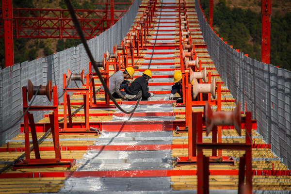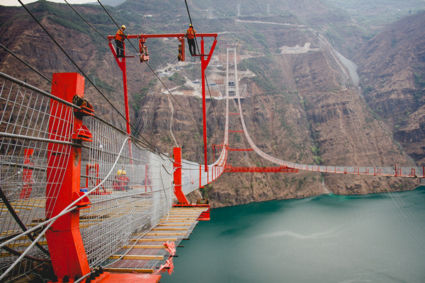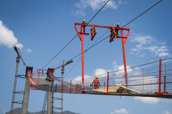 金安金沙江大桥主缆架设施工 人民网 薛丹 摄