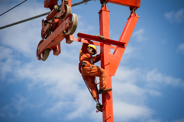 春季的云南,大风时常呼呼地刮。每天上午,带上装备的杨腾和工友们都会准时出发,前往数百米高的空中开始一天的工作。