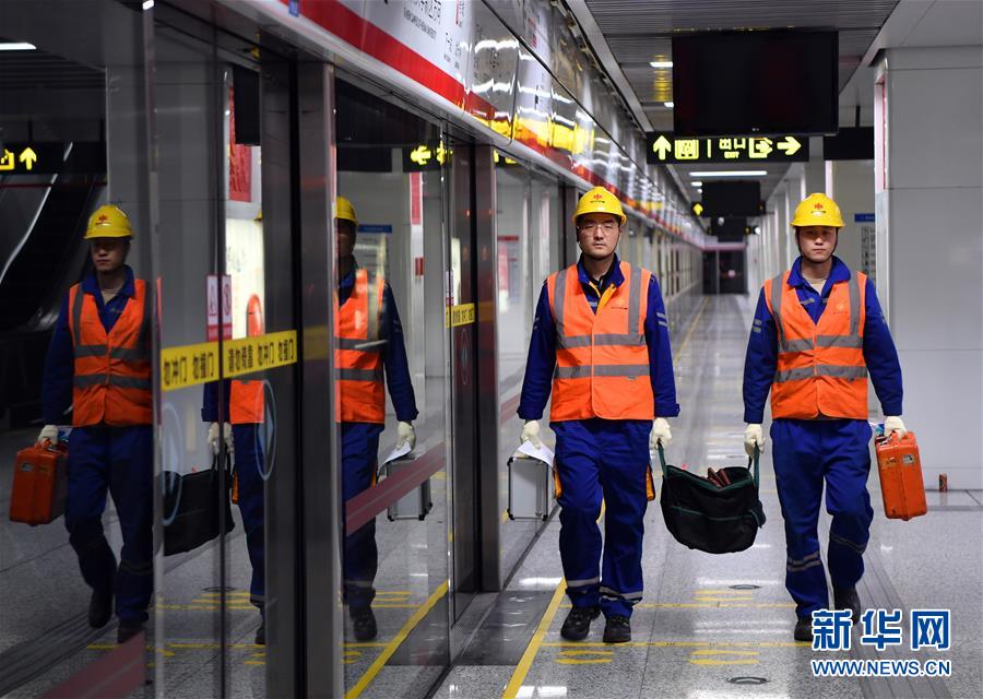 5月8日,郑州地铁集团运营分公司供建中心接触网一室的工班长吕治鹏(左)与工友准备进入隧道作业。他们负责着郑州地铁集团1号线黄河南路站至市体育中心站的接触网设备维护和检修。每天凌晨时分,有一群特殊的人活跃于郑州市城市地下,他们昼伏夜出,在地铁隧道内爬高上低,对地铁接触网进行检修,全力确保白天地铁的正常运行。5月8日凌晨,记者跟随郑州地铁集团运营分公司供建中心的接触网检修工走进郑州地铁隧道,亲身体验城市地下这些“修网者”们的辛勤工作。新华社记者 李嘉南 摄