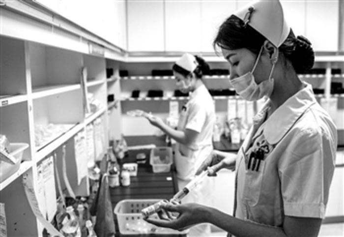 5月12日,在岗位展技能竞赛中,河北省枣强县人民医院的护士正在进行医疗药物配液。当日是国际护士节,医院组织医务工作人员进行心肺复苏、重症护理、静脉输液等专项技能比拼。 新华社记者 李晓果 摄