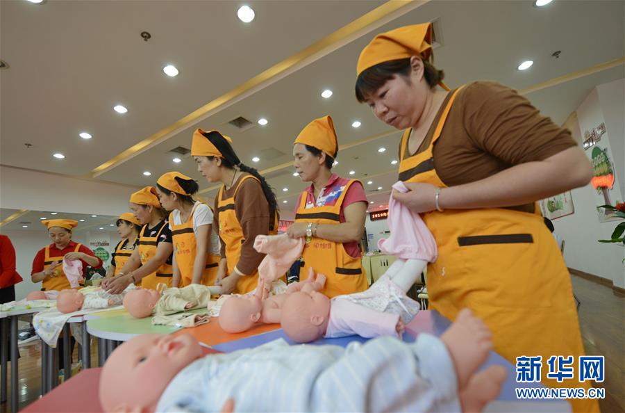 5月21日,在福建省泉州市泉港区妇女儿童活动中心,学员练习新生儿护理技能。 为提升广大农村妇女就业技能,近日,福建省泉州市泉港区举办“月嫂培训班”,分批免费为辖区110多名待业妇女提供产妇护理、新生儿护理等家政服务技能培训,并就近推荐就业。 新华社发(林弘梫 摄)